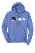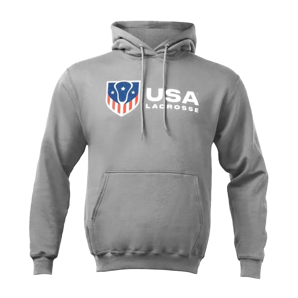 Crafted from a soft, 50/50 cotton/polyester fleece with a pill-resistant, air-jet spun finish, this classic pullover features a spacious hood, roomy front pocket, and is perfect for chilly game days or relaxing evenings. Represent USA Lacrosse in comfort and style.