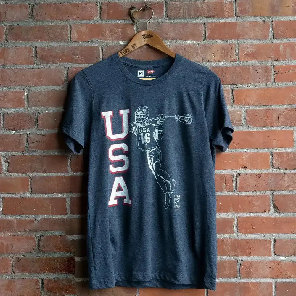 Take a trip back to lacrosse’s glory days with the USA Lacrosse Jumpshot Tee. This throwback’s got that vintage soul, made with a primo mix of 52% airlume ring-spun cotton and 48% polyester that feels so good you'll never want to take it off. This retro design is made to last, getting better with each wash, almost becoming legendary alongside you. Its unisex design suits all fans, a great way to remember those unforgettable moments that defined the sport. But supplies are dwindling, so get yours now, and wear that USA Lacrosse heritage with true style!