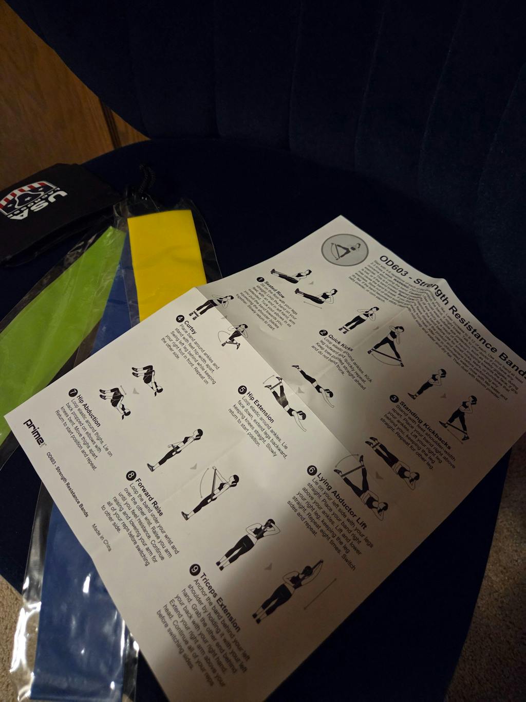 Includes:Â 30 total resistance bands with 10 each of three varying resistance levels, 10 bags for storing/organizing resistance bands and 1 instructional flyer