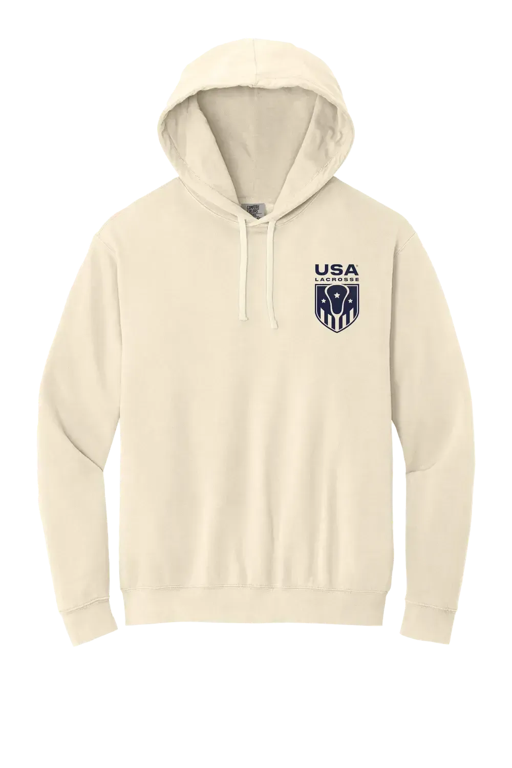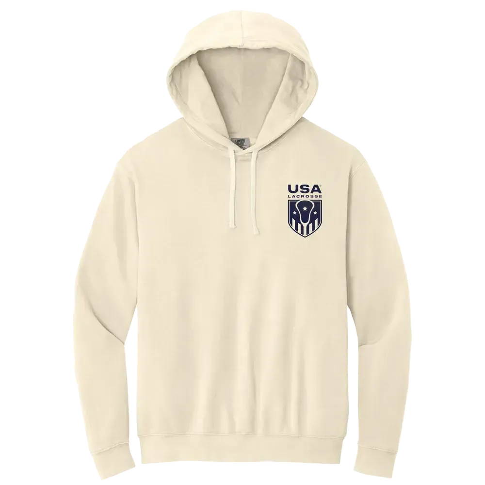 Bring a timeless, lived-in vibe to your wardrobe with the USA Lacrosse Club Hoodie. Crafted in ivory with a classic collegiate design, this hoodie captures that effortless vintage look and feel—like a piece you’ve had for years. Soft, garment-dyed cotton gives it a broken-in finish from day one, while the relaxed fit makes it an easy layer for cooler days and laid-back nights.