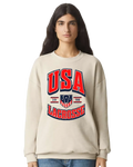 Rep classic varsity style with the USA Lacrosse Varsity Crewneck. Featuring bold collegiate lettering and the USA Lacrosse shield, this bone-colored sweatshirt brings heritage vibes with a modern edge. Crafted from American Apparel’s ReFlex Fleece, it’s soft, lightweight, and built for all-day comfort—perfect for layering at practice, in the stands, or on the go.